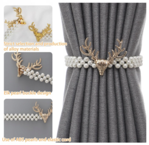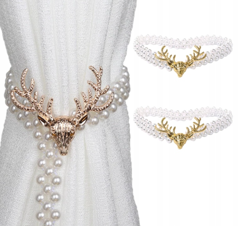 • Trwały i elegancki design: Wykonane z wytrzymałego metalu paski do zasłon mają uroczy motyw jelenia, ozdobiony małymi perełkami, dodając odrobinę elegancji i wyrafinowania do każdego pomieszczenia.